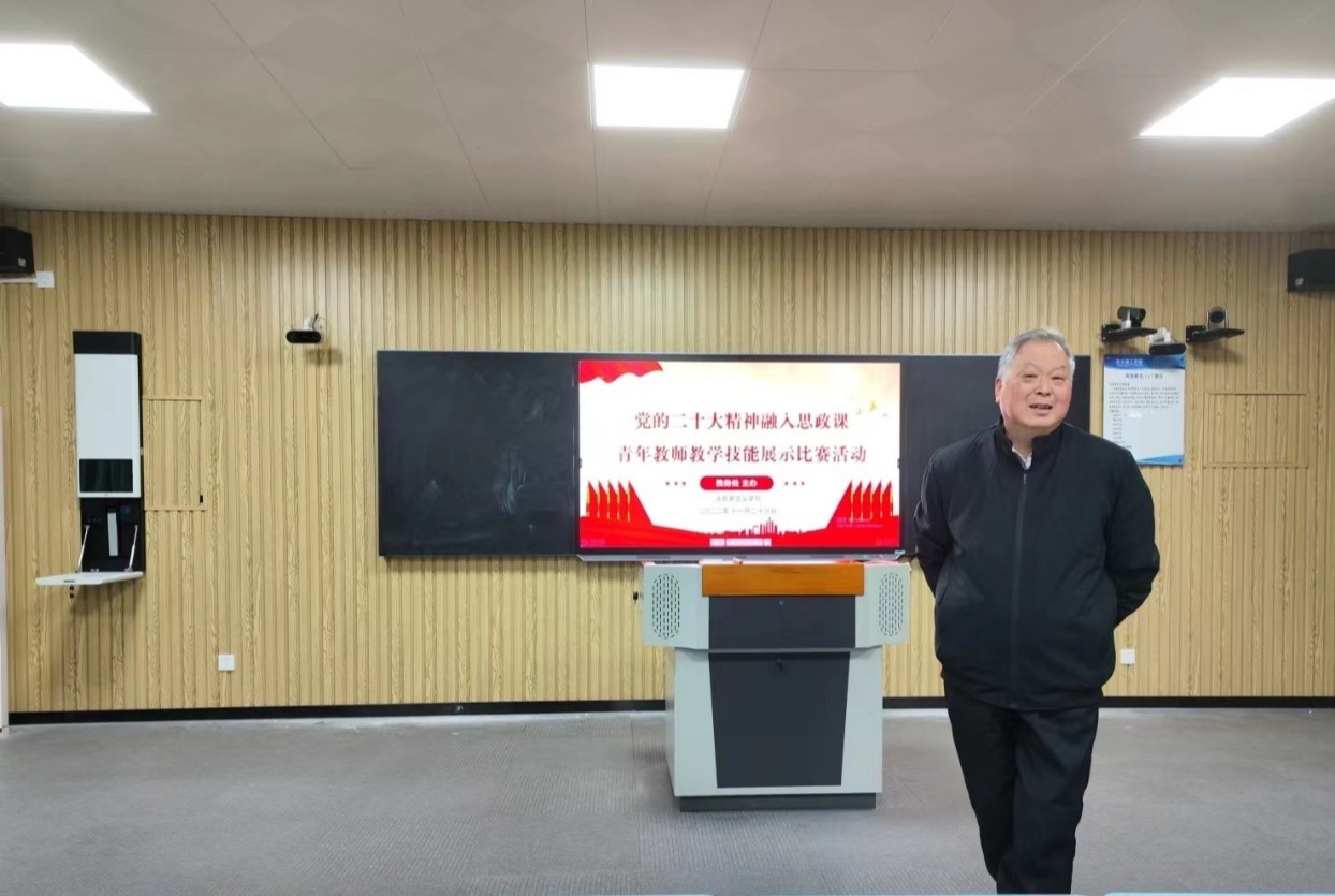 副校长汪建利对本次活动进行总结,他表示,通过比赛可以看出参赛老师们为此都积极准备,都认真学习研讨了党的二十大报告,看得出大家对本次教学比赛的重视。同时有针对性的给各位青年教师提出几点要求:一是思政课要有温度。讲课一定要声情并茂,要用情吸引学生的注意力,做到自然入心;二是挖掘教学材料的深度。教案质量要提高,教学设计要新颖、过程要合理、目标要明确,突出教案的规范性、科学性和先进性;三是提升思政课高度。要在“融合”上下功夫,将党的二十大的新理论自然“融入”思政课,案例讲解与思政原理要融会贯通。最后,汪校长强调作为思政课教师要落实党的二十大报告中强调的讲好中国故事,塑造中国形象。这也为思政教师指明了前进的道路和方向,要以党的二十大精神为指导,传播中国声音,让党的二十大新理论“带着热气、存着温度”进教案、进课堂、进学生头脑,讲细讲实,通过故事中蕴含的原理引发学生共鸣、深思,激发学生学习兴趣。