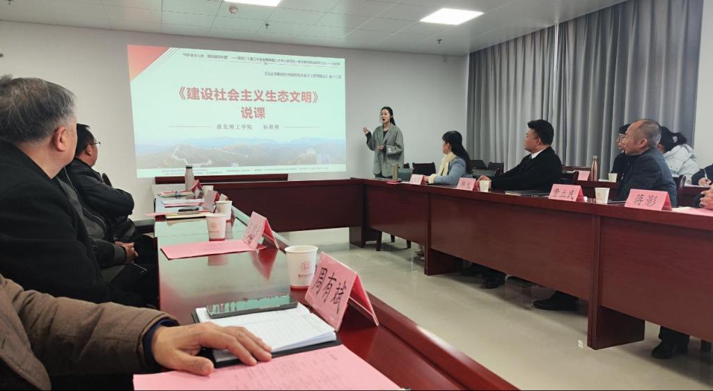 本次联合教研活动以“党的二十届三中全会精神融入思政课”为主题,由来自大中小学各学段的四位思政课优秀教师代表分别围绕“习近平生态文明思想”中的教学内容进行了“同课异构”教学设计展示。杜集区朱庄实验小学的赵俊淇老师以《辽阔的土地》为题,从我国幅员辽阔的国土导入,结合多种教学手段进行了小学段教学展示。杜集区石台实验学校吴可可老师通过案例式教学形式,展示了题为《共筑生命家园》的初中段教学设计。开渠中学的蒋迎秋老师以《践行两山理念,打造幸福宜居环境》为题,结合当地乡土文化特色融入思政课,以座谈交流的形式进行了高中段的教学设计。最后,beat365正版唯一官网骨干教师孙澄澄进行了大学段的教学展示,她通过从理论到实践,从国内到国际,系统地阐述了一个完整的生态文明建设框架,展示了《建设社会主义生态文明》这一章节的教学设计。