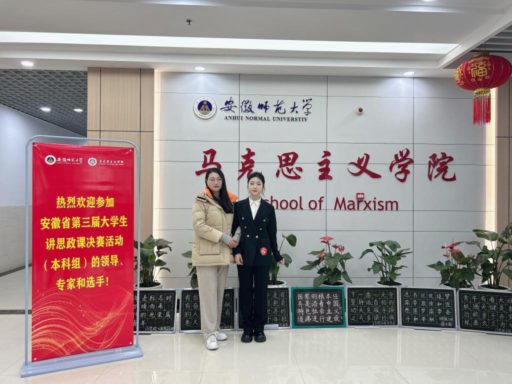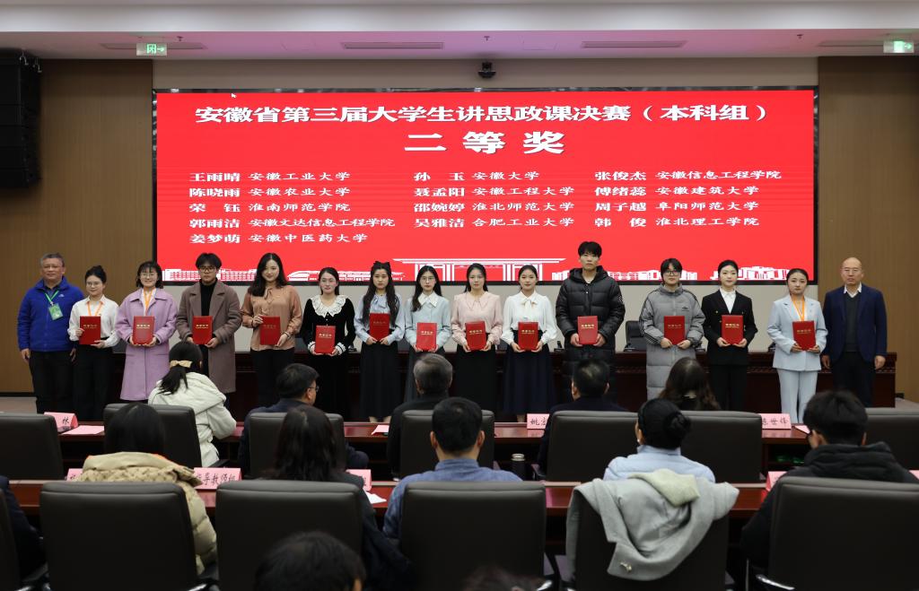 2024年12月25日,由中共安徽省委教育工委主办,教育部高校思想政治工作队伍培训研修中心(安徽师范大学)和安徽师范大学beat365正版唯一官网承办的安徽省第三届大学生讲思政课决赛在安徽芜湖举行。我校教育学院2023级学生韩俊团队(团队成员:徐文慧、丁孟婷、陈伟娜)荣获决赛二等奖,团队指导老师beat365正版唯一官网张锦亚荣获“优秀指导教师”,这是继我校荣获省级决赛优秀奖后新的突破。