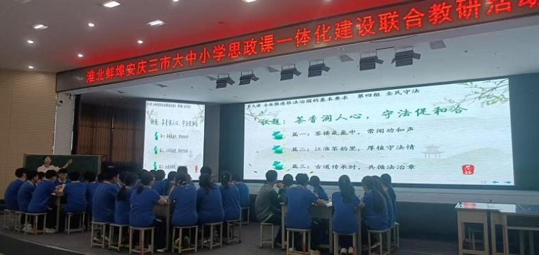 日前,由淮北市教育科学研究所、蚌埠市教育科学研究所及安庆市教育教学教研室联合主办的“淮北蚌埠安庆大中小学思政课一体化建设联合教研活动”在淮北市实验高中成功举办。活动以“传承传统文化,弘扬法治精神”为主题,旨在通过大中小学思政课一体化教研,深化三地教育交流与合作,共同探索大中小学思政课一体化建设新路径。beat365正版唯一官网负责人及部分教师参加了此次活动。