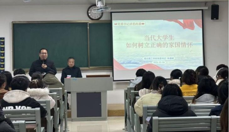 授课中,朱德顺围绕家国情怀的内涵与特征、什么是正确的家国情怀、为什么要树立正确的家国情怀、怎样树立正确的家国情怀、让正确的家国情怀成为青春底色等五个维度系统展开。深刻阐释家国情怀的时代意蕴,引导同学们正确把握家国关系、新时代青年树立家国情怀的历史必然与现实意义。