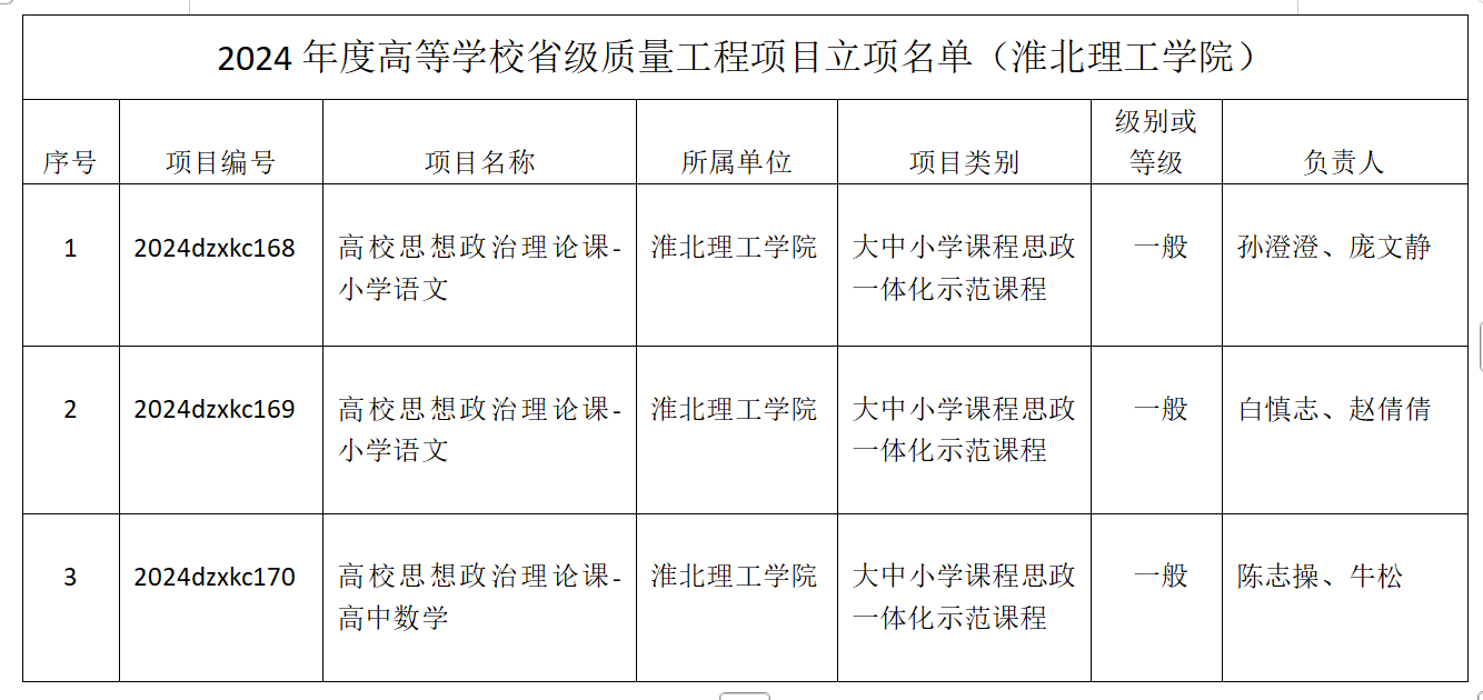 beat365正版唯一官网2024年度质量工程项目立项名单