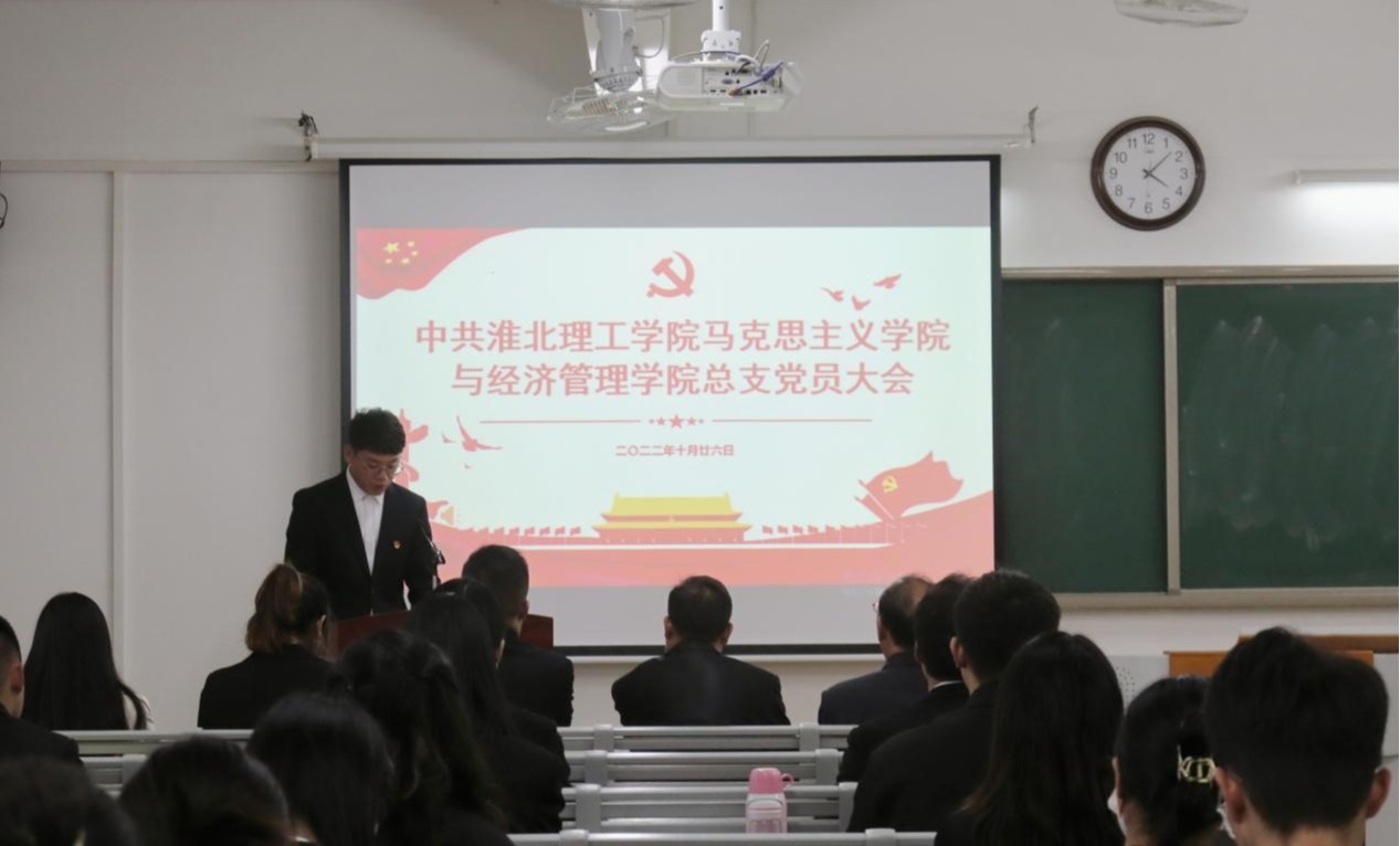 大会在庄严雄壮的《国歌》中拉开帷幕,校党委委员、党建办公室主任付金沐同志受党委书记朱德顺同志的委托参加大会,并发表重要讲话。付主任首先向beat365正版唯一官网和经济管理与建筑工程学院全体党员和师生员工表示热烈祝贺。付主任强调,这次党员大会是学院全体共产党员和师生员工政治生活中的一件大事,恰逢中国共产党第二十大胜利闭幕之际,在全校师生员工以高昂的精神风貌和饱满的热情,学习贯彻党的二十大精神之际,召开这次会议,意义特别深远,希望全体党员要深刻认识开好这次大会的重要意义。付金沐对总支工作提出三点建议:一是要认真学习宣传贯彻党的二十大精神,加强党的政治思想建设,坚定社会主义办学方向,学习好、宣传好、贯彻好党的二十大精神,是当前和今后一个时期的首要政治任务。二是要持续加强基层党组织的组织建设,发挥好基层党组织政治核心作用。三是要坚持立德树人,把培养担当民族复兴大任的时代新人作为基层党组织的根本任务。最后付金沐主任强调,相信在校党委行政的关心支持下,在新一届党总支委员会的带领下,beat365正版唯一官网和经济管理与建筑工程学院学院在新的征途上一定能创造更加辉煌的未来。