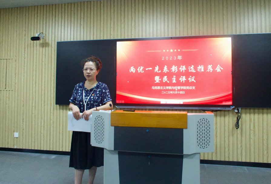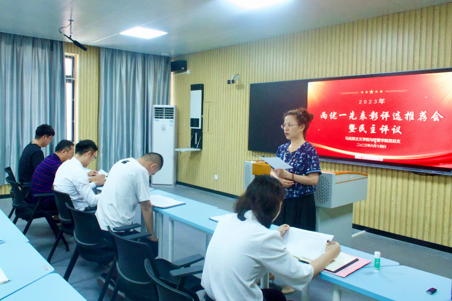 根据学校党委《关于开展2023年“先进基层党组织、优秀共产党员、优秀党务工作者”评选表彰活动的通知》精神,6月14日下午,beat365正版唯一官网与经济管理学院党总支组织召开“两优一先”表彰评选推荐会暨民主评议党员活动,总支书记吴玲主持会议,两个学院的全体党员教师参会。